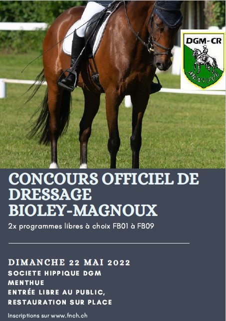 Pensez à vous inscrire à notre concours officiel de dressage qui aura lieu le dimanche 22 mai à Bioley-Magnoux !